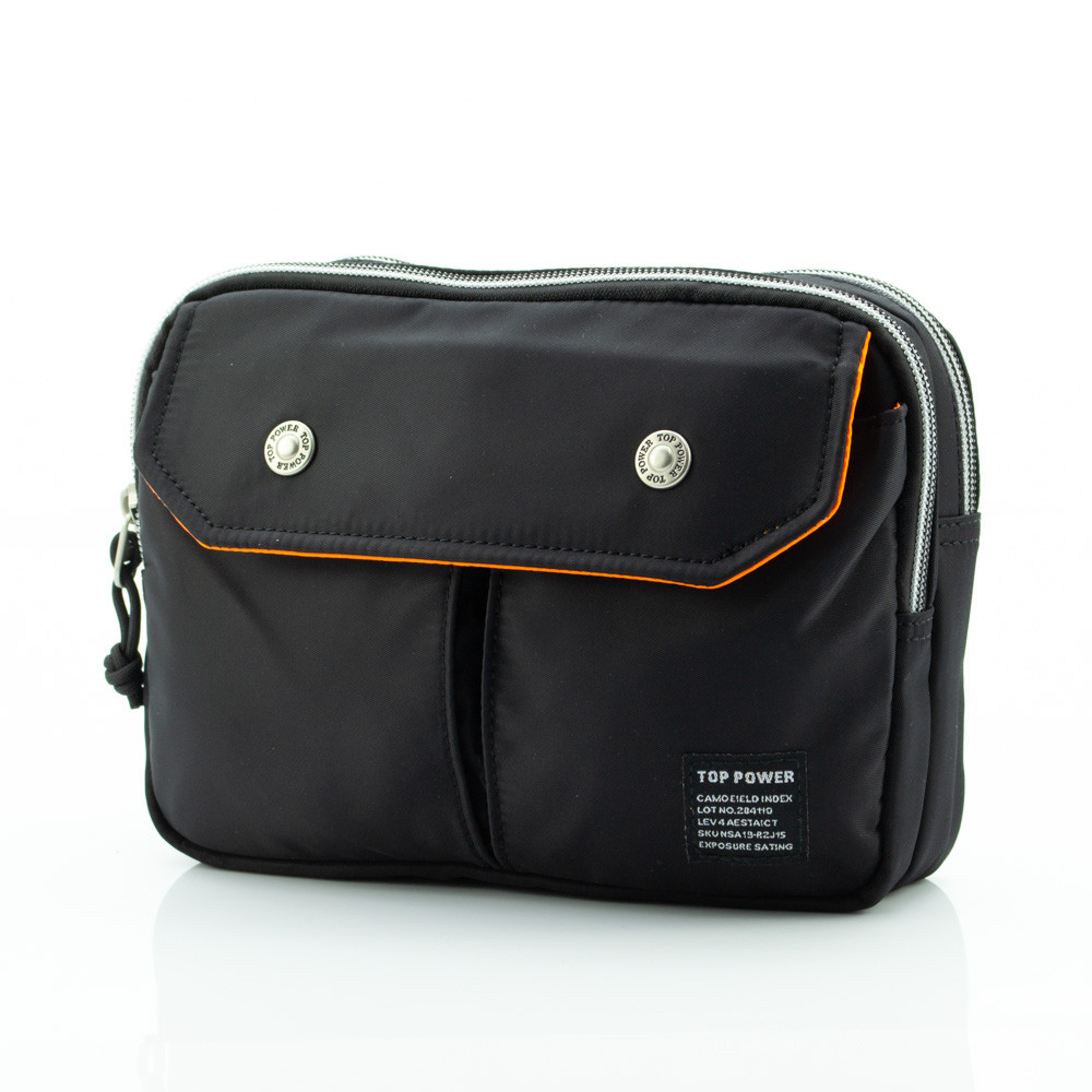 Горизонтальна чоловіча сумка Top Power 1812 виготовлена з високоякісного та зносостійкого поліестеру чорного кольору.