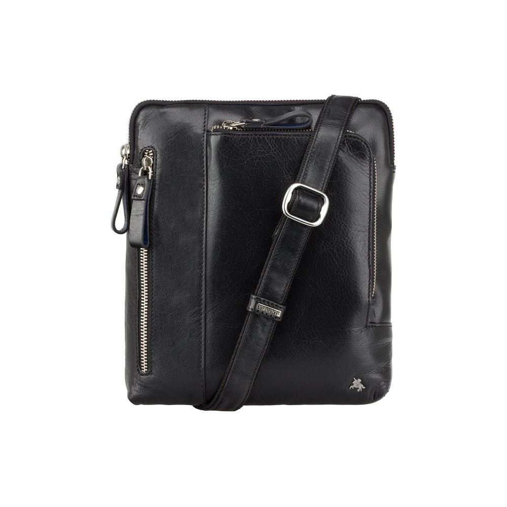 Чоловіча шкіряна сумка від англійського бренда Visconti потішить Вас високою якістю матеріалів і пошиттям, а також зручністю й оригінальним зовнішнім виглядом. Сумка виготовлена з м'якої високоякісної телячої шкіри в насиченому чорному кольорі.